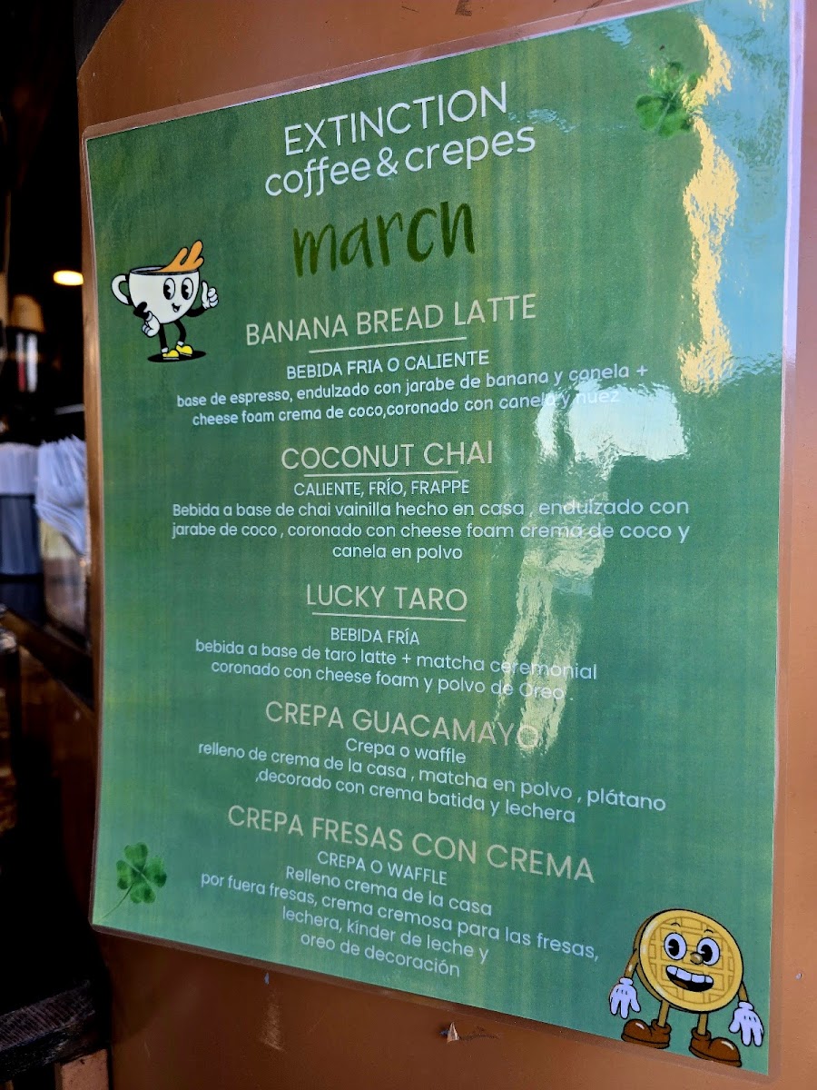 Introducing the menu at Extinction Coffee & Crepes is a delightful experience. Located at C. Real del Mar 05 in Porticos De San Antonio, this café offers an inviting atmosphere that beckons both coffee aficionados and crepe lovers alike. The star of the menu, as highlighted by patron reviews, is undoubtedly the Extinction crepe, celebrated for its exceptional house cream and rich flavors. Customers rave about the speedy service, even during busy hours, making it an ideal stop for a quick treat.